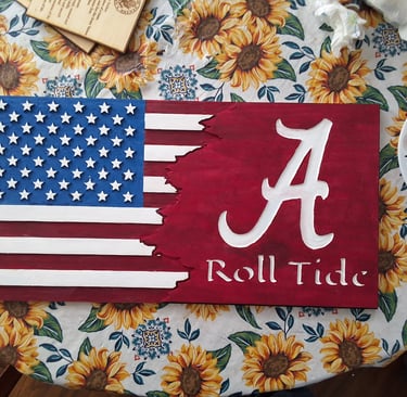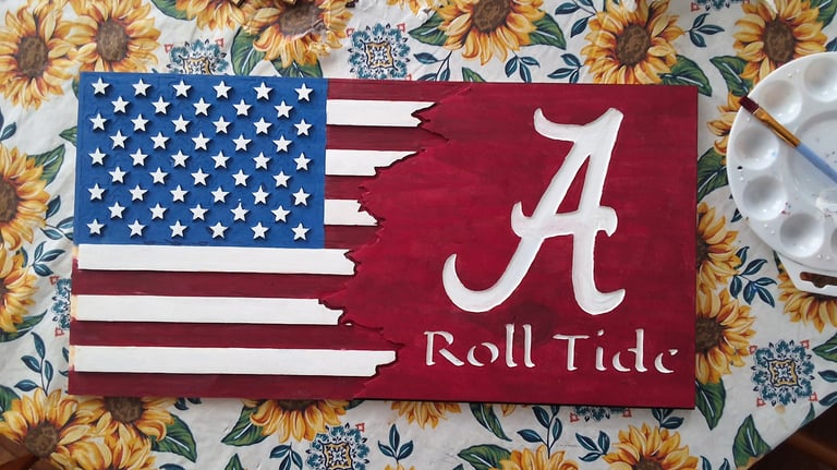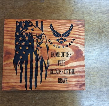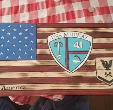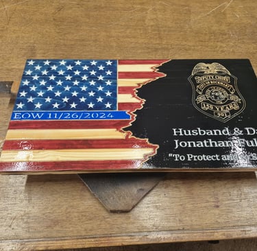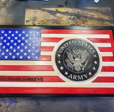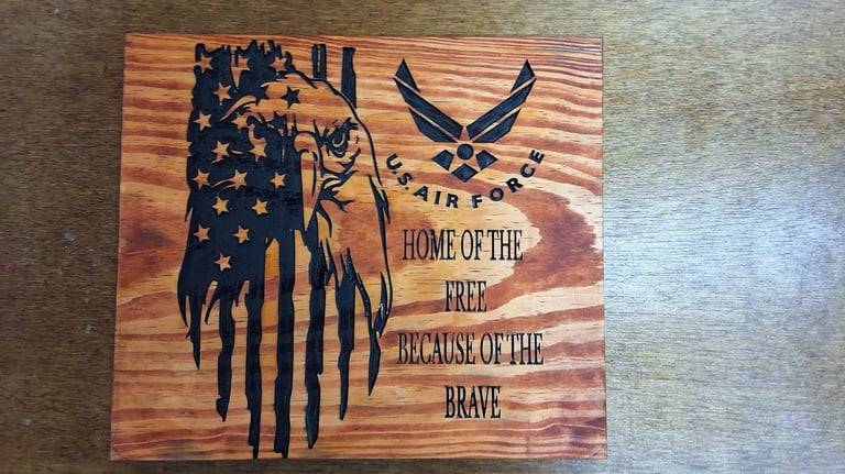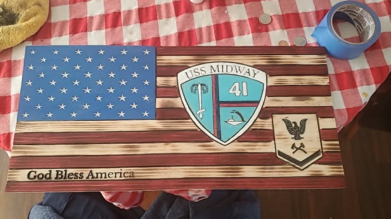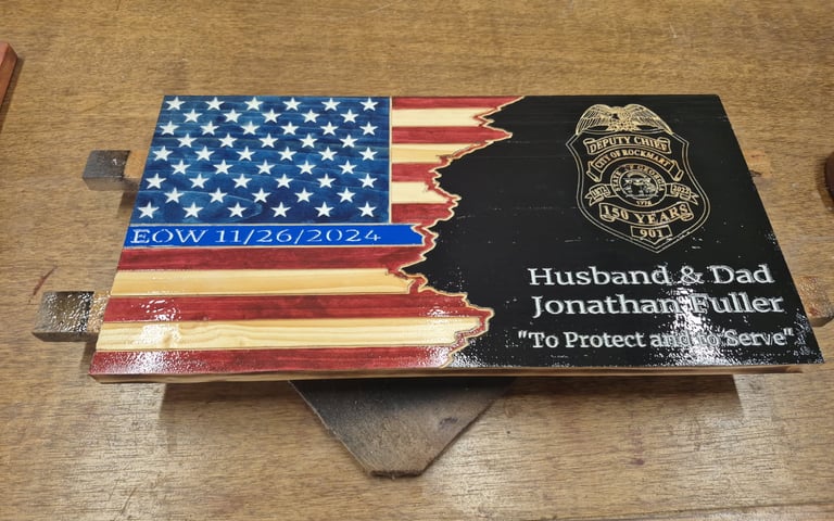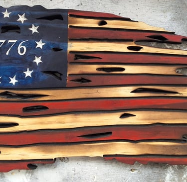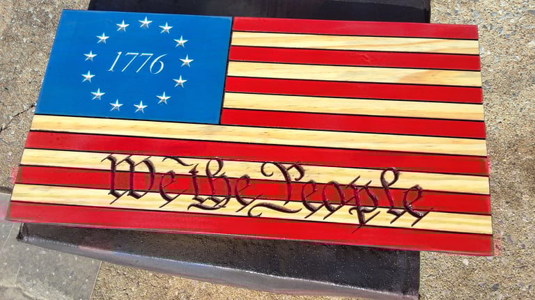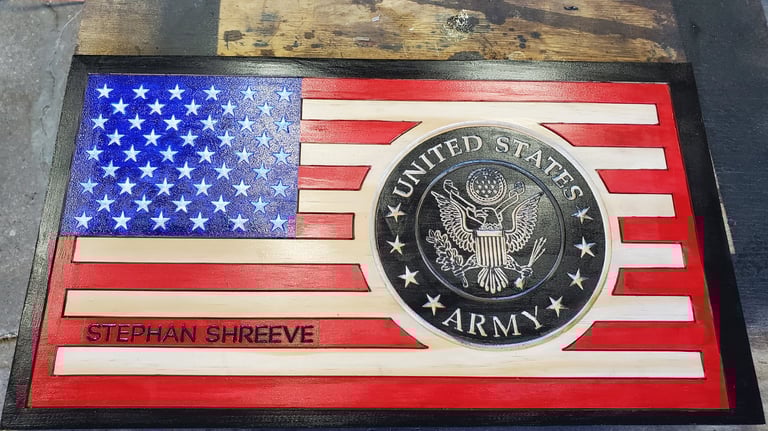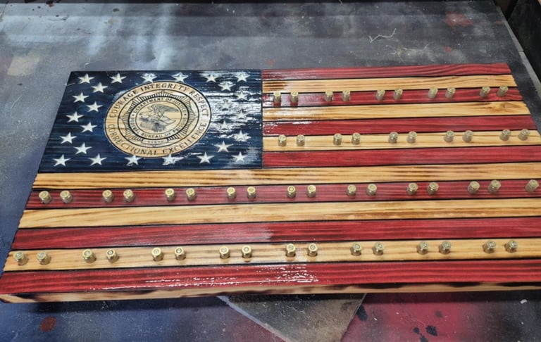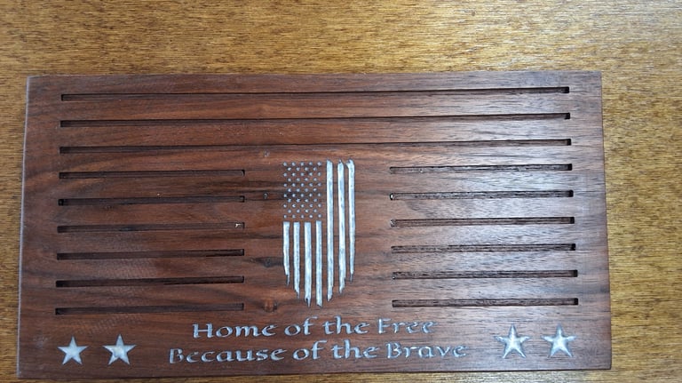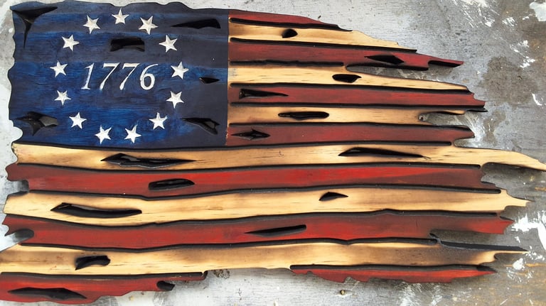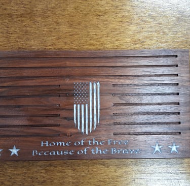Discover uniquely crafted wood decor that transforms your living space with patriotic themes. Celebrate service and Americana with our distinctive pieces, from flags to cutting boards.